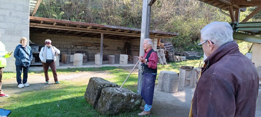 In zwei Gruppen aufgeteilt, begab sich eine Gruppe zum Gelände des Steinhauervereins, wo Bernhard Klapperich anschaulich die Entstehung des Tuffs sowie dessen Bedeutung für Weibern erläuterte. Manfred Dahm demonstrierte eindrucksvoll die handwerkliche Bearbeitung des Tuffsteins. Parallel dazu führte die zweite Gruppe – begleitet von Heinz-Udo König, Gisela Ebert und Erwin See – durch das Tuffsteinmuseum. Dort tauchten die Teilnehmer tief in die faszinierende Welt des Tuffsteins ein, lernten seine Vielfalt kennen und erfuhren mehr über die Menschen, die diesen wertvollen Rohstoff über Generationen hinweg gewonnen und verarbeitet haben.