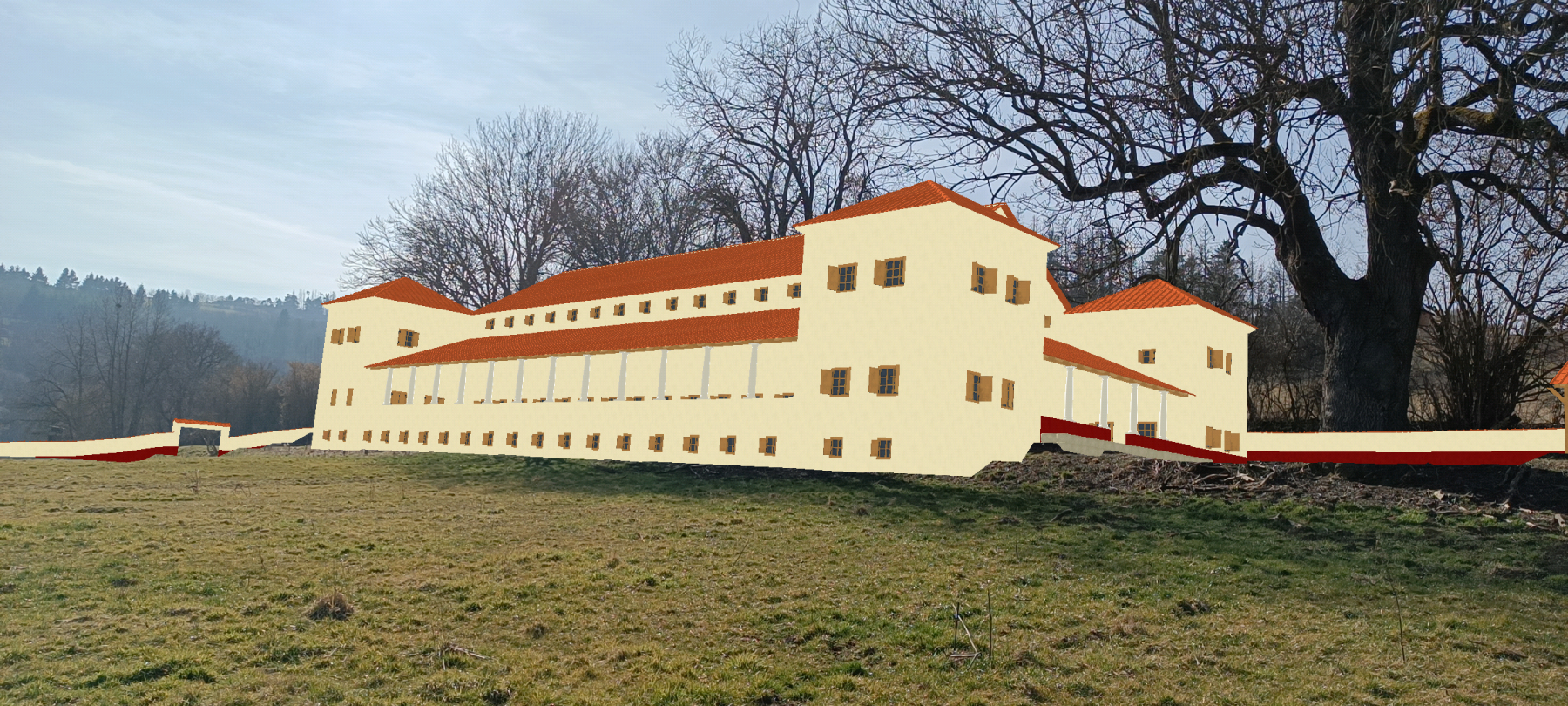 Grabungen wurden bis heute nicht durchgeführt. Ein Grundplan der ehemaligen villa rustica ist ausschließlich aufgrund von magnetischen Prospektionen, Geoelektrik und Georadarmessungen erfasst. Die 103 x 170 m große Anlage ist umfriedet. Innerhalb des ummauerten Geländes sind mehrere Gebäude, Wohngebäude, Wirtschaftsgebäude, Speicherbauten und weitere Versorgungsbauten bekannt. Die Anordnung der Gebäude entspricht nicht dem einer typischen axialsymmetrisch gegliederten villa rustica. Aufgrund der anscheinend wahllos im Hofgelände liegenden Gebäude wird diese als Streuhofanlage angesprochen. Der Hof war wohl zur Versorgung der Arbeiter da, die den Tuff abbauten. Bis heute wurde nicht ausgegraben. Wissen über die Grundrisse der Gebäude haben wir durch genaues Beobachten des Geländes.